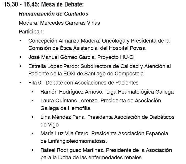 You can download the program here (only available in Spanish). Jose Manuel will participate in the first table in the afternoon, “Humanization of care”: